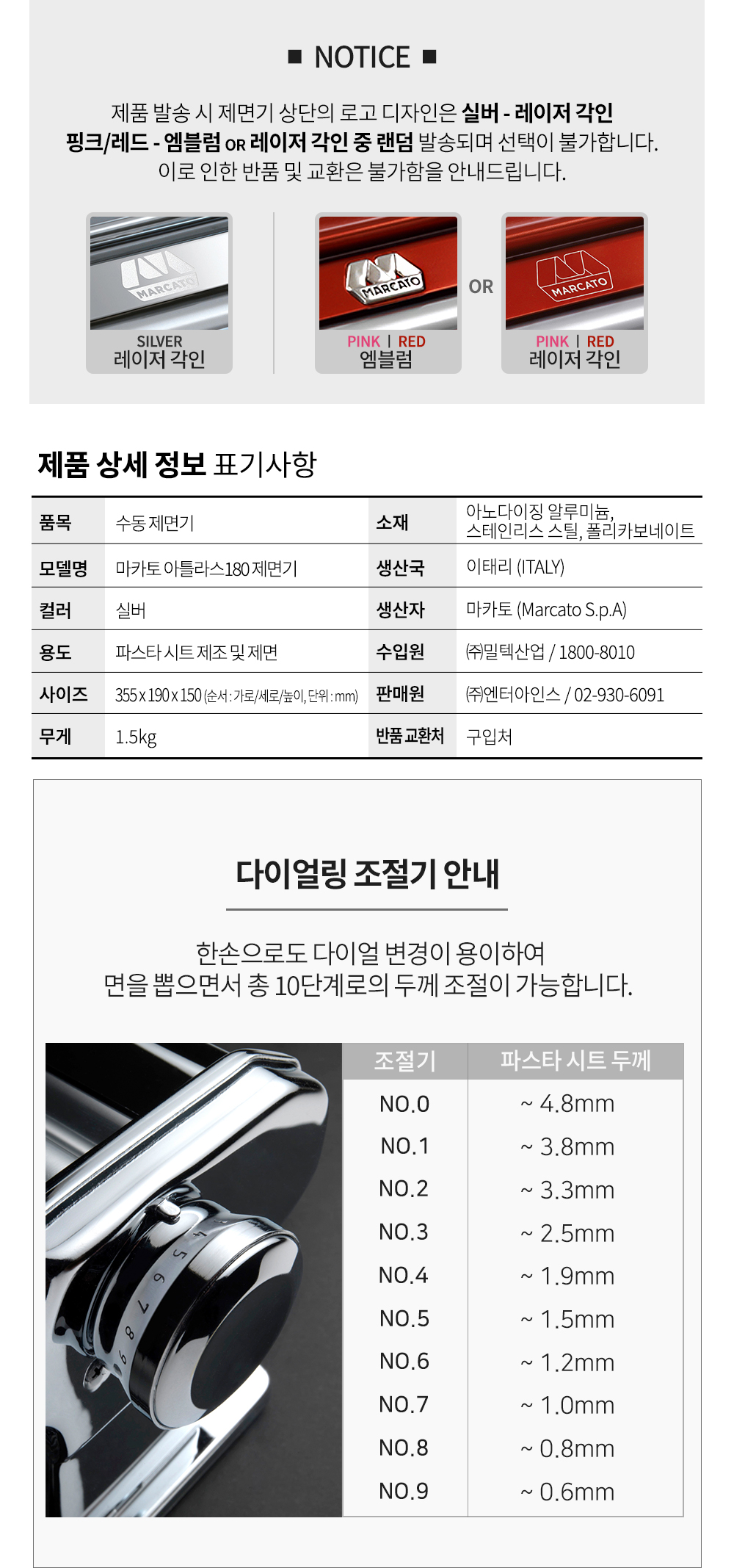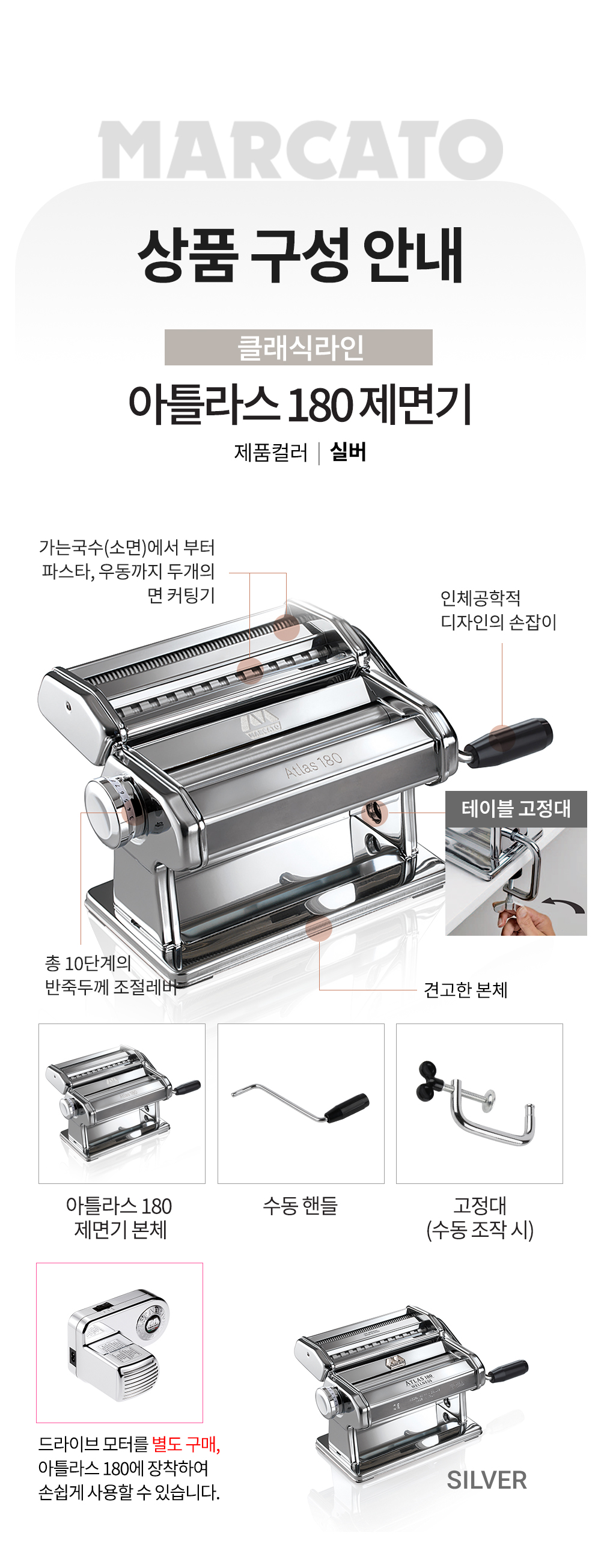 | 품명 및 모델명 | 마카토 제면기 아틀라스 180 실버 | ||